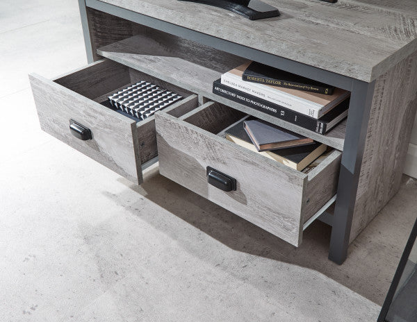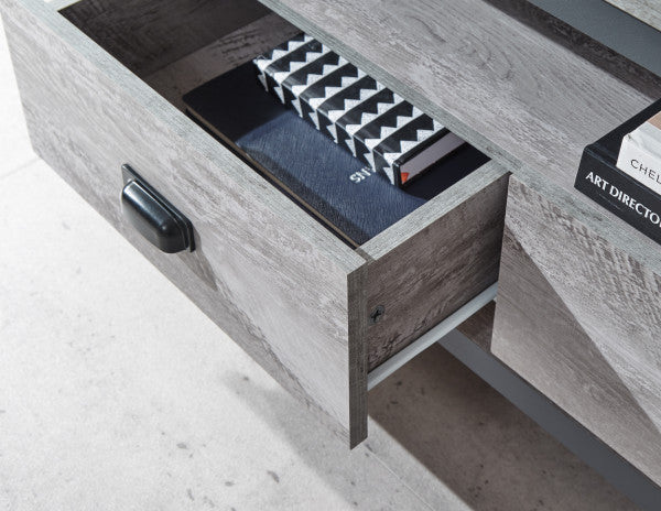 The distressed grey finish is modern and with the panelled design this corner TV unit is fashionable. For easy access to the drawers use the handles to glide the drawer out, with a gliding motion due to the metal runners. The top surface is spacious place ornaments and a large TV on top perfect for large or small rooms.