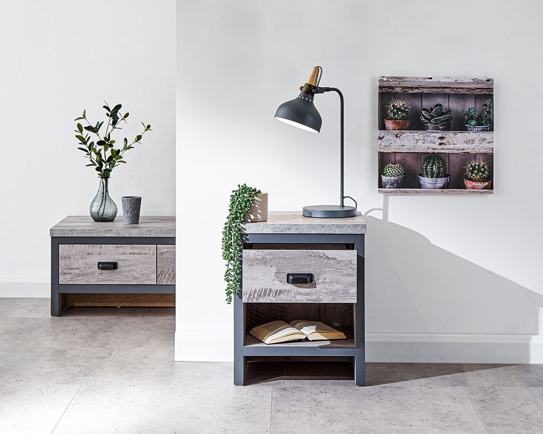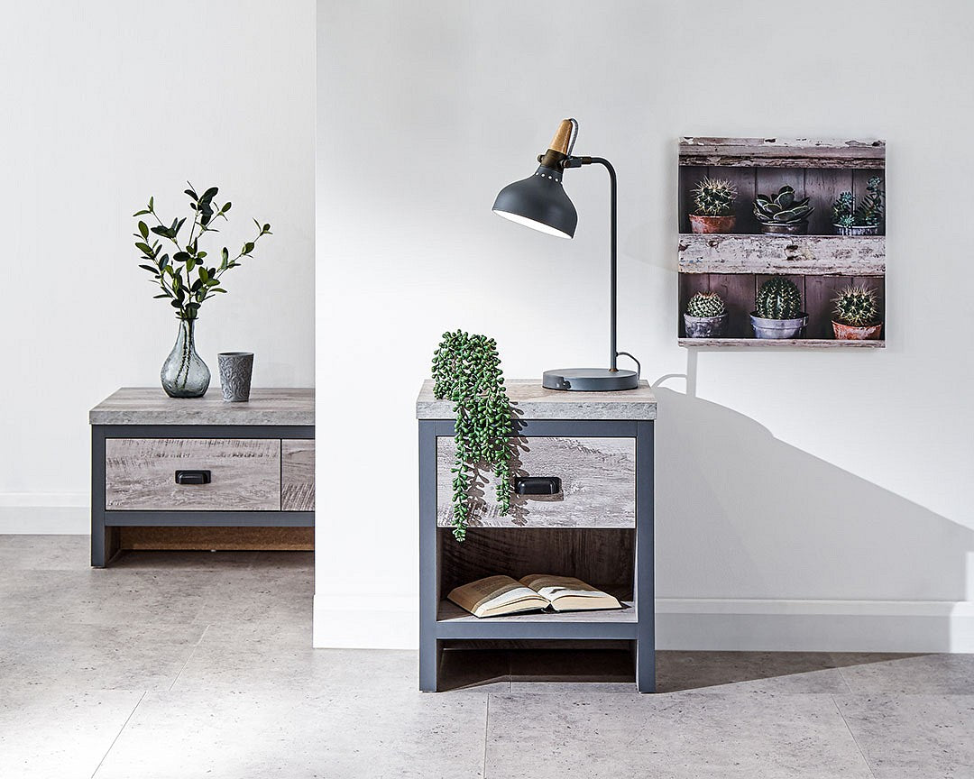 Smart and effective the GFW Boston Lamp Table is perfect for modern home settings. Featuring a drawer and shelving perfect for creating order in the room. The distressed finish is sophisticated and will compliment other furniture in the room.