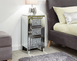 Stunning and dazzling this glass bed side table with 2 draws has all the makings of a glamorous edition in the bedroom. The strong MDF wood and glass combination is going to be reliable through out the years. The sturdy design helps accessing the charming bedside table from your bedsteads.