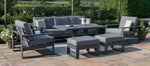 With a gas lift rising table this sets ideal for different scenarios like chilling and dining. Use as a coffee table in the afternoon then transform to a dining in the evening. The table is slatted Aluminium any spills or accidents will just flow away on to the floor, this tables all about low maintenance. The solid structured base keeps the table sturdy and strong while in use. The rectangular shape is perfect for keeping everyone with in arms reach of the table from the sofas and benches. Completed with the solid Aluminium and fabric benches matching the sofas and chairs.