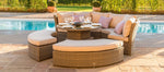 The Oval table is designed for everyone to stay with in the conversation area. With the rattan frame this tables strong and resilient. The tempered glass is stronger than average perfect for safety and long term values. There's the fire pit glass surround which helps with cooking and keeps the users away from the flames again ideal for safety. The solid foundation and legs with the rounded rattan remains sturdy and stable exactly what you want from a garden table.