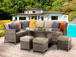 Modern and stylish this garden corner sofa set with stools would make a real impact on your lifestyle during the summer months. With the rattan and fabric finish this set is contemporary, a buy for the future as well as today. With the grey colours you're going to find it's easily matched when it comes to other furniture in the outdoor area.